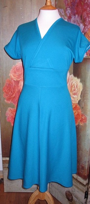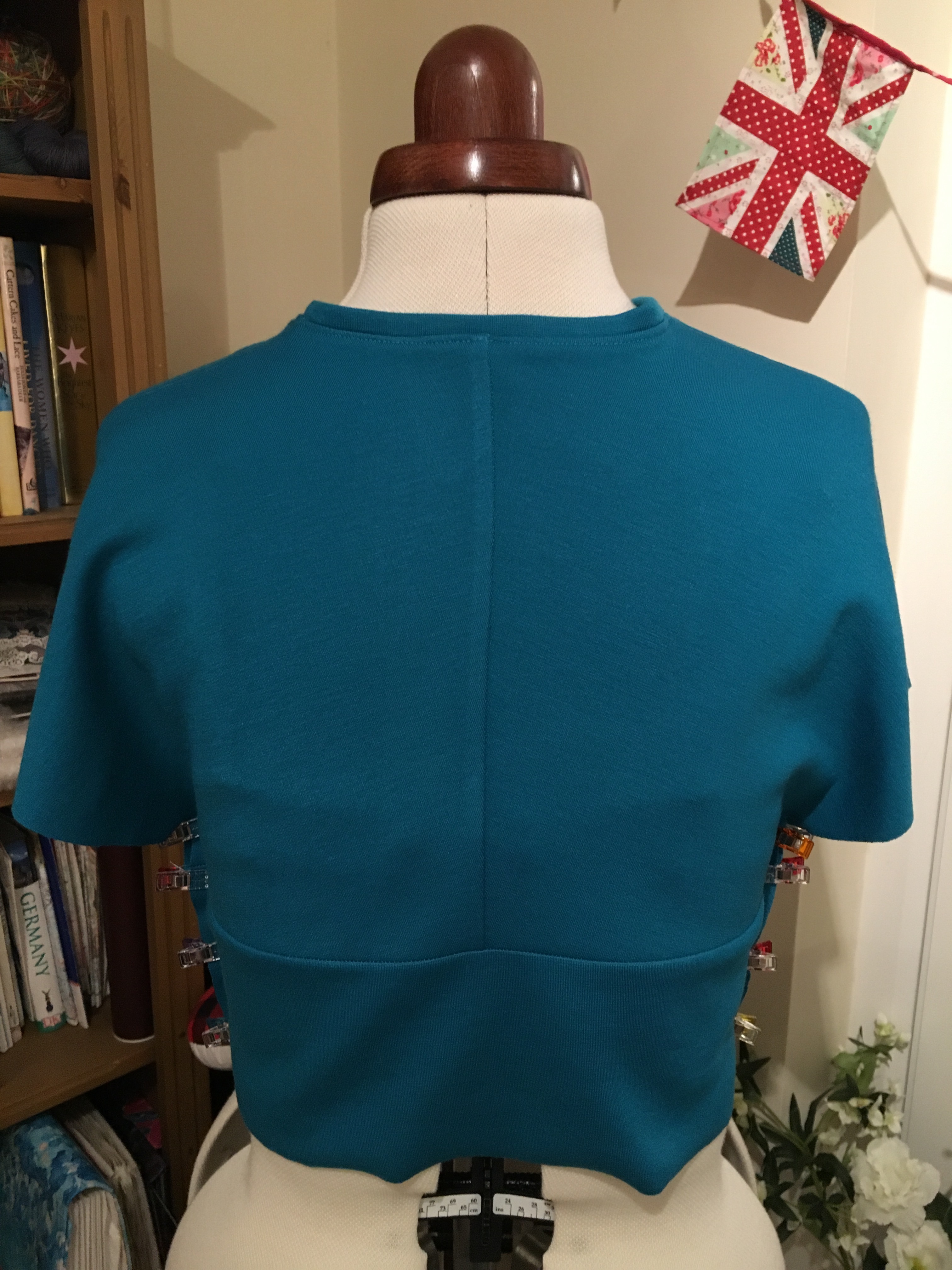 For my first flirtation with both the pattern and knits, I used a heavy teal ponte roma from my stash. I’d never been that keen on the colour so figured it wouldn’t matter if it all went horribly wrong, but it grew on me as the dress grew. The fabric had a wonderful stability to it and ended up feeling like a spirit guide gently introducing me to working with stretchy fabrics!