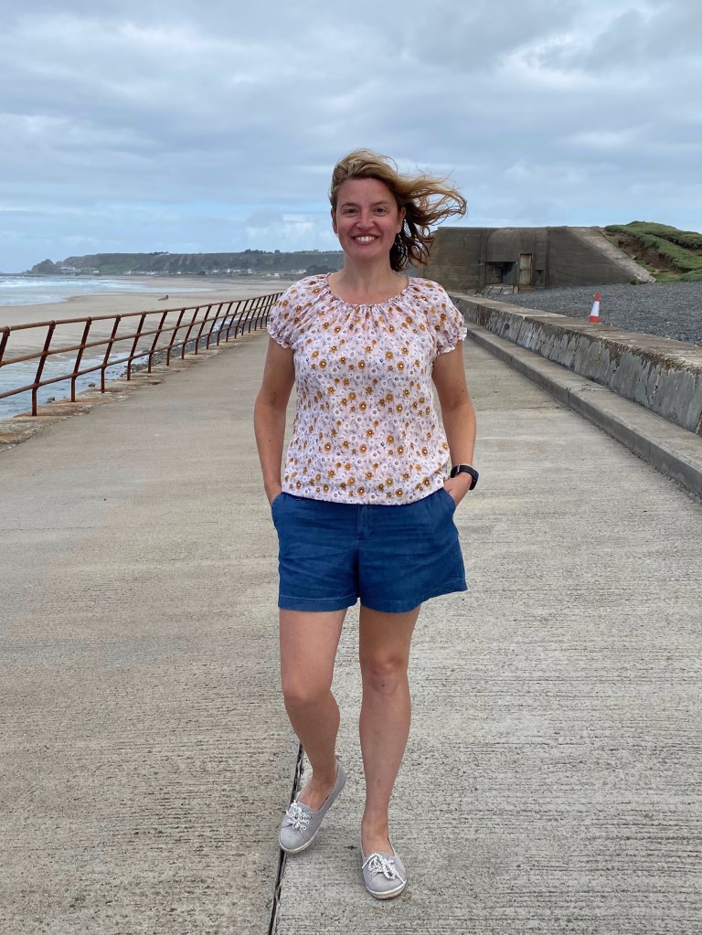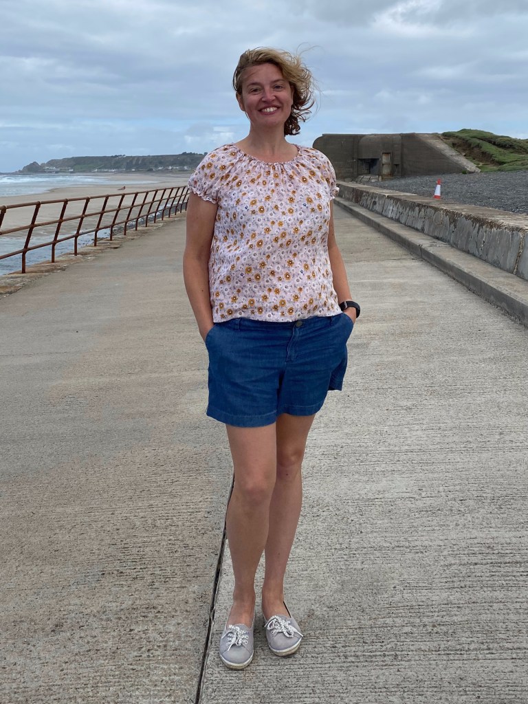 But let’s start with the straight forward bit – the top! For some time now I’ve been on the lookout for a simple woven top, but specifically wanted something with a slighty more feminine feel that the multitude of boxy tee patterns out there. So when the shout came out to test Sinclair Patterns Poesy blouse I was intrigued and shyly filled out the application.